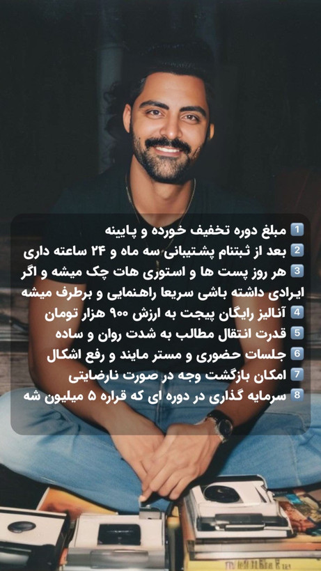این دوره شامل سه فصل است که به آرایشگرها کمک میکند تا در مورد ذهنیت برنده و پولساز ، الگوریتمهای اینستاگرام و نحوه تولید محتوا ، تدوین با موبایل و کپ کات و سناریو نویسی جهت جذب مخاطب هدف را کاملا یاد بگیرند